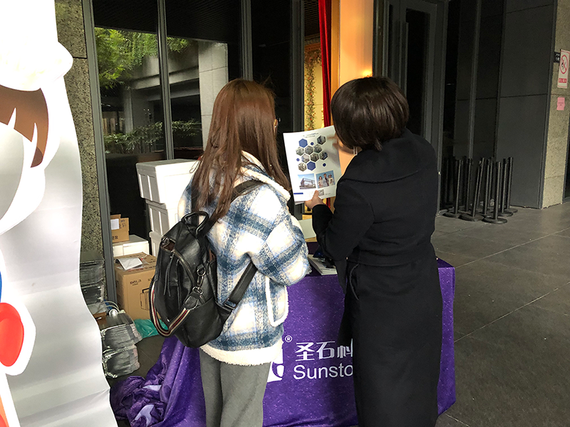 圣石科技受邀參與此次公益活動(dòng),公司企劃部、公關(guān)部負(fù)責(zé)人周曉女士、梅娜女士帶隊(duì)協(xié)力,并為前來參與活動(dòng)的市民朋友每人公益派送正裝姍渡?活性膠原護(hù)膚噴霧一支。